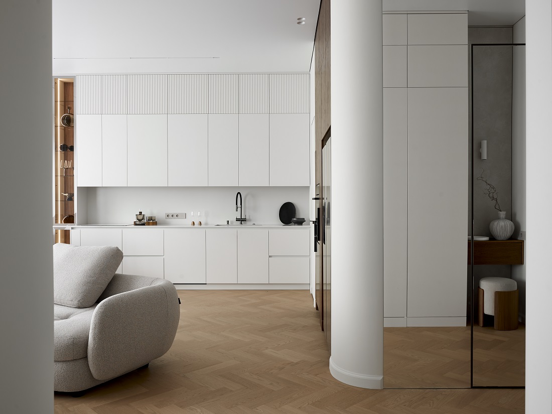 Квартира в ЖК AFI Park Воронцовский в Москве площадью 98 кв.м в минималистичном стиле — это интерьер, где нет ничего лишнего, при этом есть и декор, и детали.